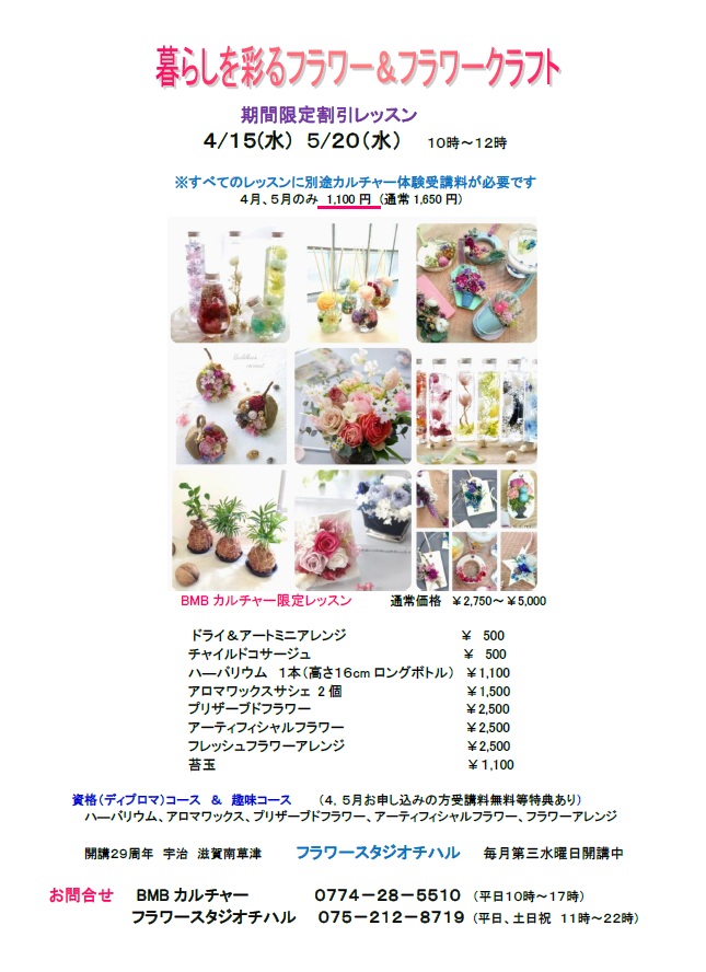 この大変お得な4月・5月にフラワーレッスンを体験しませんか♪